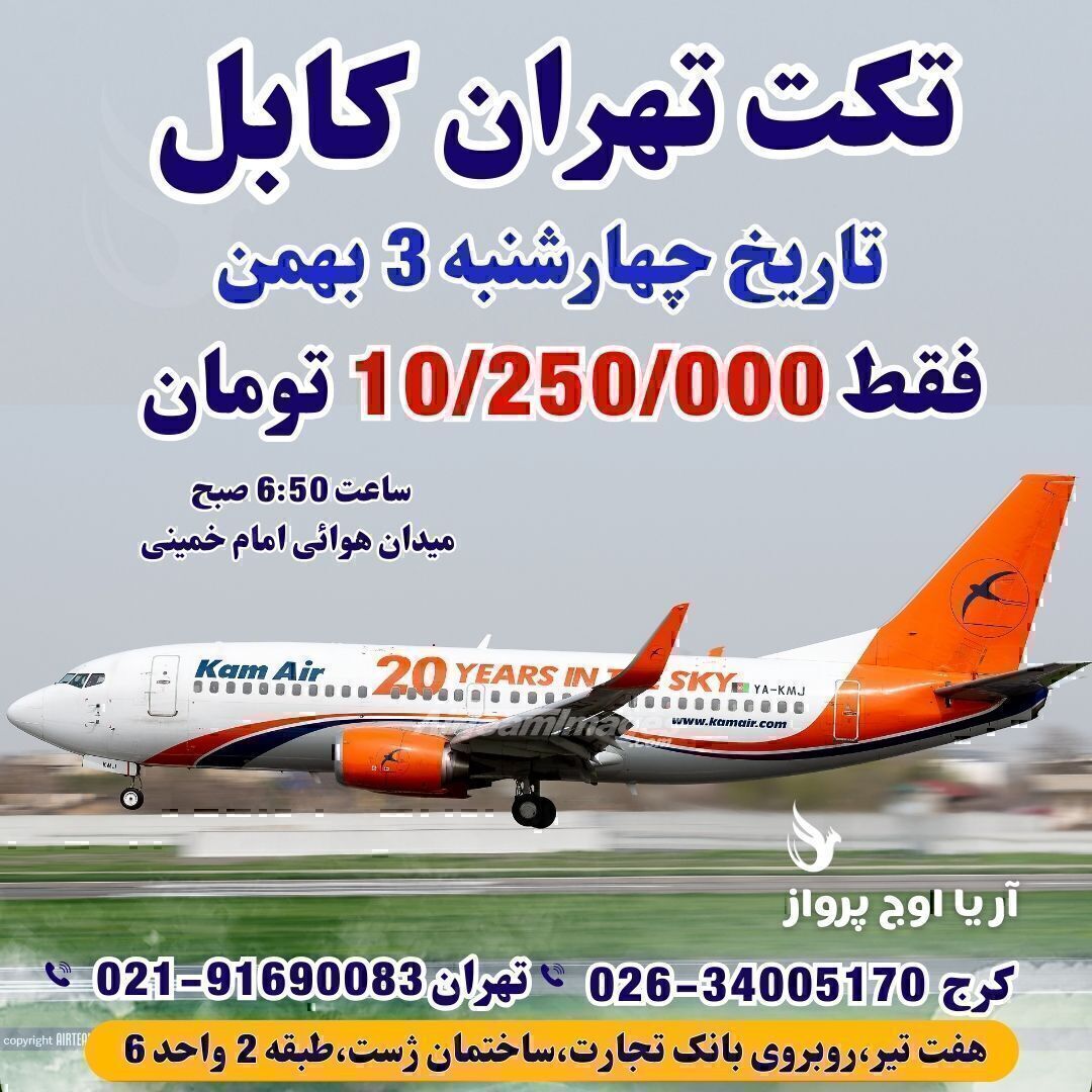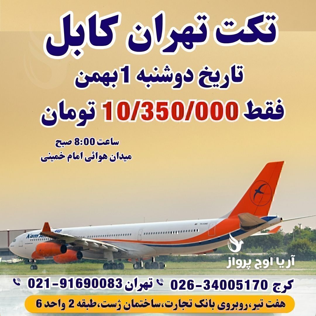 - قیمت بلیط پرواز از تهران به کابل برای اکونومی کلاس از 5,500,000 ریال