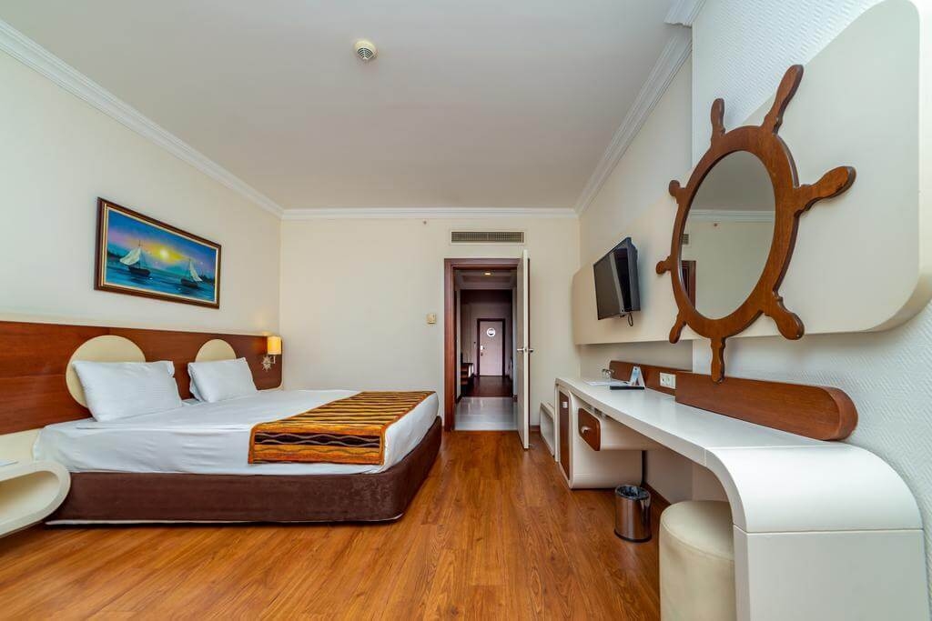 برای جمعهای خانوادگی هتلی مجلل و زیبا به نام کاخ دلفین با امکاناتی متنوع مناسب است. برای اقامت در بخش تاریخی و بافت قدیمی شهر، هتل اسکی ماسال پیشنهاد میشود. این هتل دارای یک استخر با فضای باز بوده و تا ساحل فاصله چندانی ندارد. هتل زیبایی دیگر به نام آزادی که در سواحل لارا قرار گرفته است. این هتل امکانات کامل و مفرح و فضایی مدرن دارد.