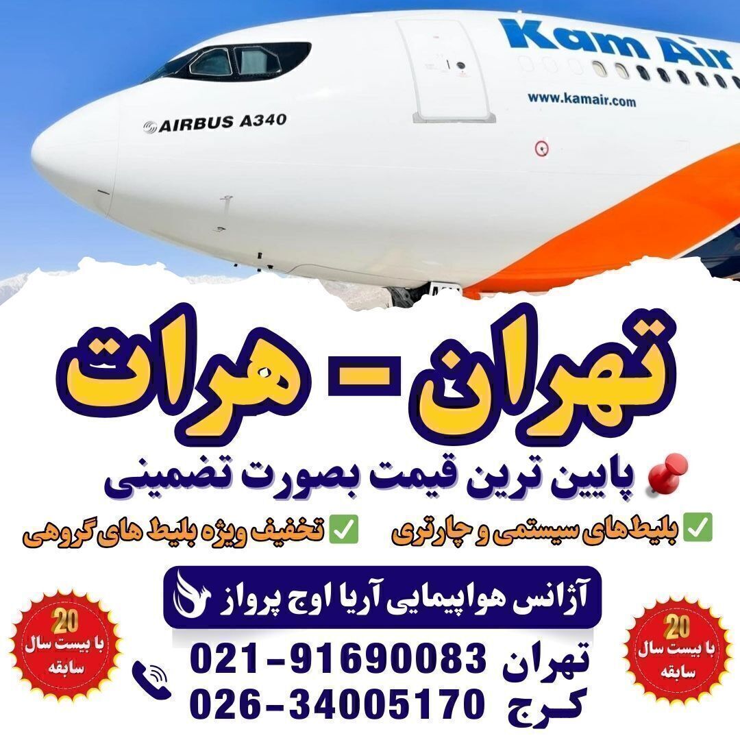 - قیمت بلیط پرواز از تهران به هرات از 4,500,000 ریال