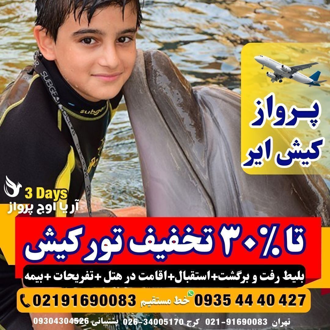✅ تور کیش – مهر ۱۴۰۴ (۳ شب) – پرواز آریا اوج پرواز